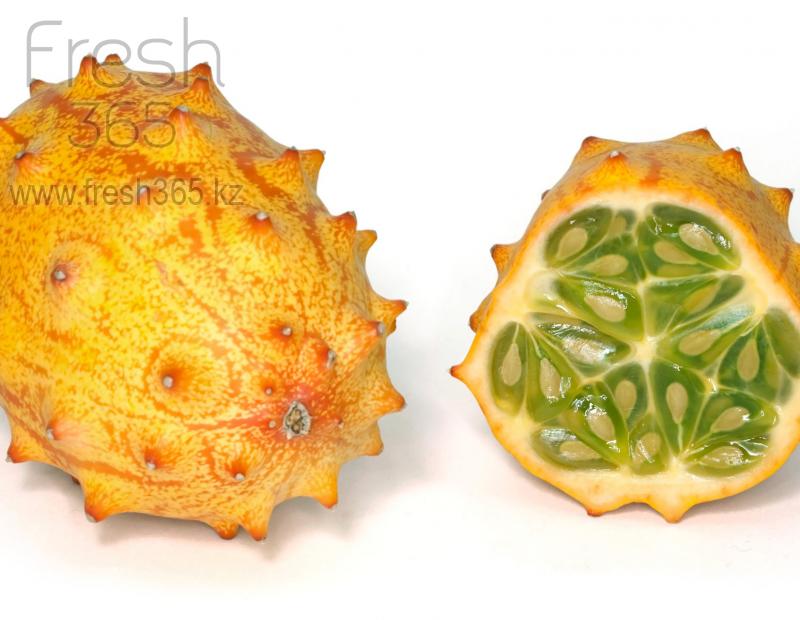 89% фрукта кивано, это вода. Это очень низкокалорийный продукт, идеально подходит для тех кто следит за фигурой.